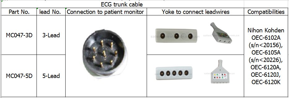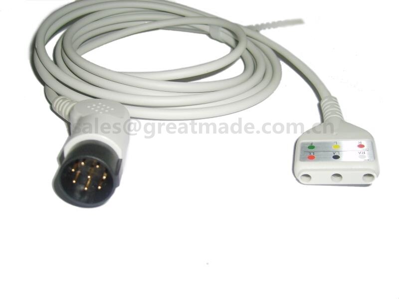 Mos keladigan Nihon Kohden EKG kabeli, 8pin, Din Yoke, 3-qo'rg'oshin , OEC-6102A