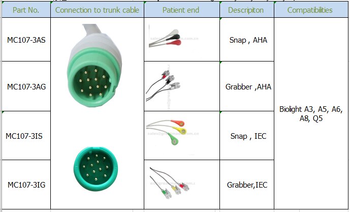 Issiq teglar: mos keluvchi biolight a3, a5, a6, a8, q5 ecg simli qo'rg'oshinli sim. iec, 3-qo'rg'oshin, maydalashtiruvchi, yashil 12pin, Xitoy, ishlab chiqaruvchilar, tayyorlangan, quyma, chegirma, past narx, yuqori sifat