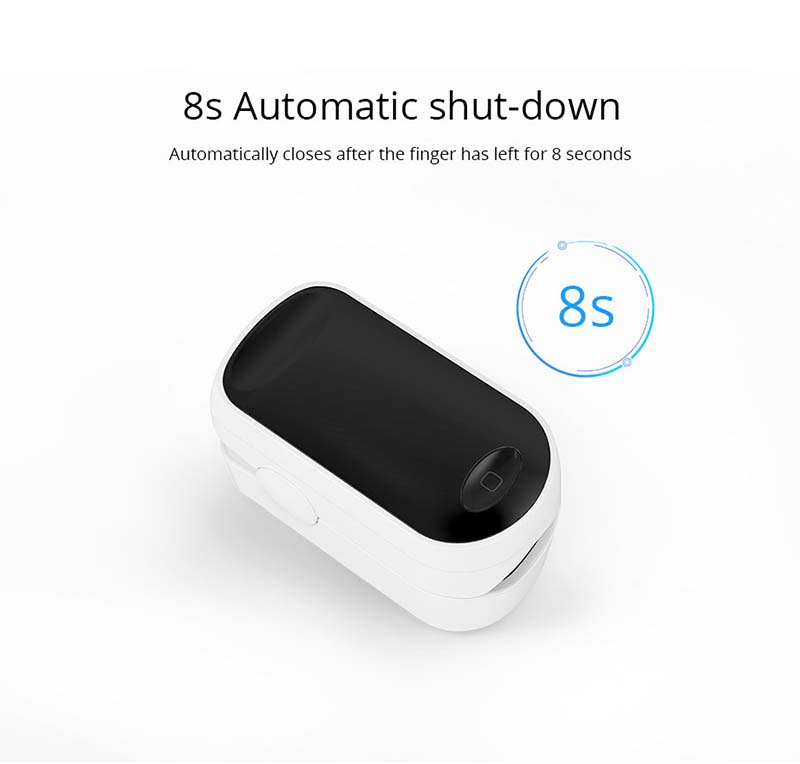 Barmoq pulsining oksimetri - bu yurak urish tezligini va qon kislorod bilan to'yinganligini tekshirishning qulay va aniq usuli. Shuningdek, u aniqlikni kafolatlaydigan Pletismograf to'lqinini ham ko'rsatadi. O'z-o'zidan sozlanadigan barmoq qisqichi va oddiy bitta tugmachali dizayni oson ishlashga imkon beradi. Yuk ko'taradigan sumka va bo'yin / bilak shnuri bilan birga keladi. Hamshira va shifokorga bo'yniga osib qo'yish qulay. Kichik ko'chma o'lcham ishlov berishni va olib yurishni osonlashtiradi. Kundalik foydalanish uchun javob beradi, har qanday vaqtda sog'lig'ingizni o'lchang.