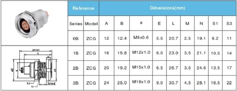 2.0B seriyali: 2 ta pin, 3 ta pin, 4 ta pin, 5 ta pin, 6 ta pin, 7 ta pin, 9 ta pin.