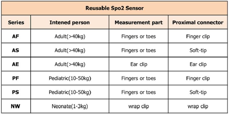 (AF&AS ketma-ketligi) Katta hajmdagi qayta ishlatiladigan spo2 sensori og'irligi 40kg dan katta bo'lgan bemorlarda arterial gemoglobinning (SpO2) kislorod bilan funktsional kislorod bilan to'yinganligini doimiy puls oksimetri bilan bog'langan.